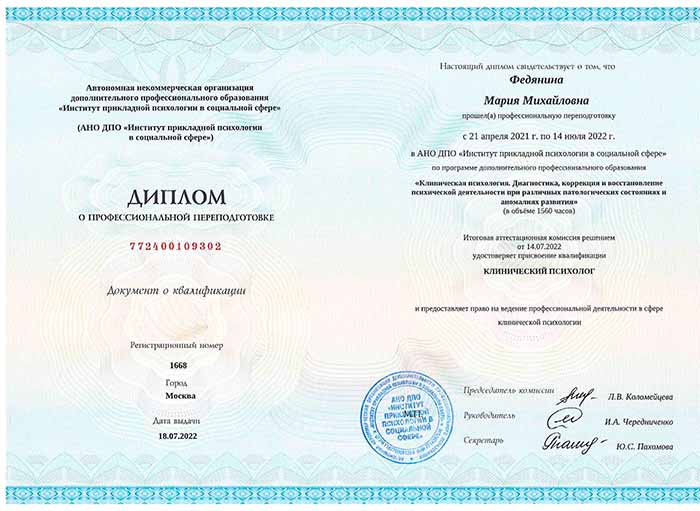 По итогам собранных данных специалисты формируют полную клиническую картину. При выявлении расстройств, требующих медикаментозной коррекции, подключается врач-психиатр. Диагноз становится обоснованием для назначения терапии, которая снимет остроту симптомов и позволит человеку эффективно участвовать в психотерапии.